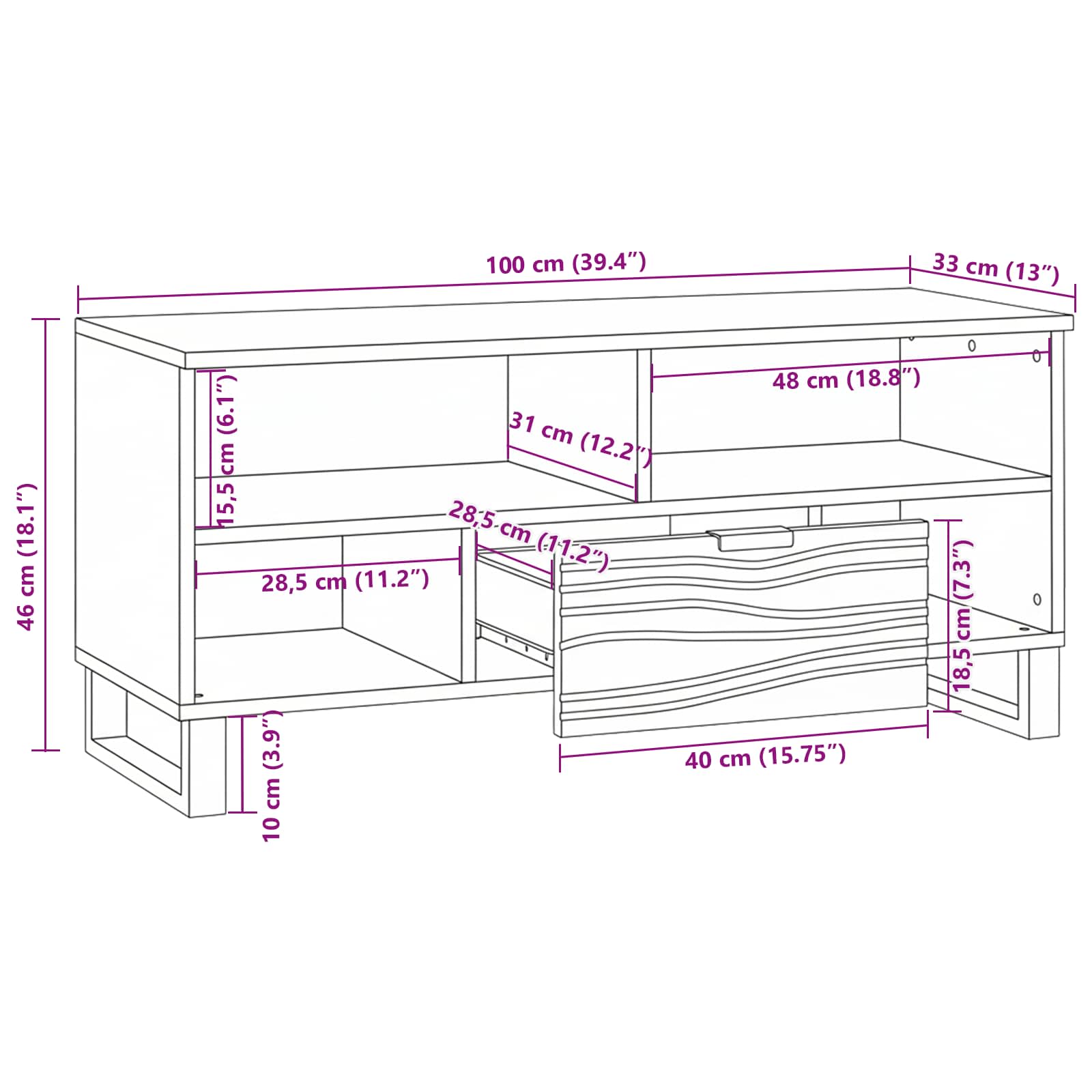 • Άφθονη Αποθήκευση Με ράφια και συρτάρια, αυτή η μονάδα προσφέρει άφθονο αποθηκευτικό χώρο για οποιοδήποτε αντικείμενο. Τα ράφια είναι πολύ καλά για να δείχνουν διακοσμητικά ή να αποθηκεύουν ηλεκτρονικά, ενώ τα συρτάρια κρατούν τα πιο προσωπικά αντικείμενα διακριτικά. Αυτός ο χώρος συνδυάζει πρακτικότητα και στυλ.