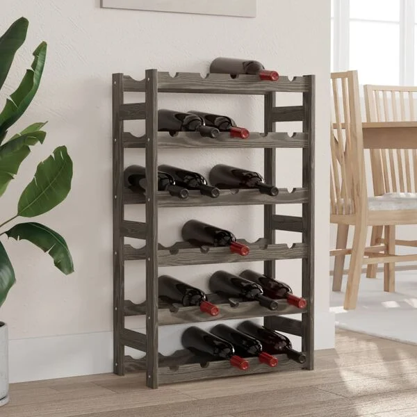 Ραφιέρα/Σταντ Κρασιών για 30 Φιάλες από Μασίφ Ξύλο Πεύκου γκρι χρώμα (373380)-D